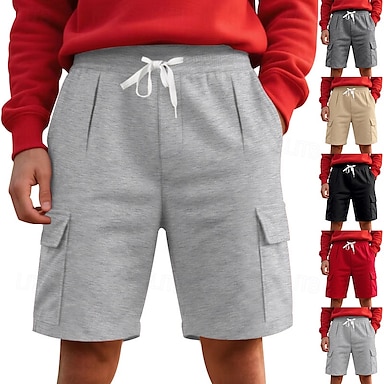Homens Bermuda Cargo Shorts de moletom Calção Shorts de verão Bolsos Cintura elástica Com Cordão Tecido Conforto Curto Esportes Diário Para Noite Moda Casual Preto Vermelho Micro-Elástica