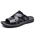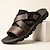 Sandálias masculinas de couro sintético marrom, modelo slide, com bico aberto, confortáveis para o verão, casuais, para praia e uso diário.