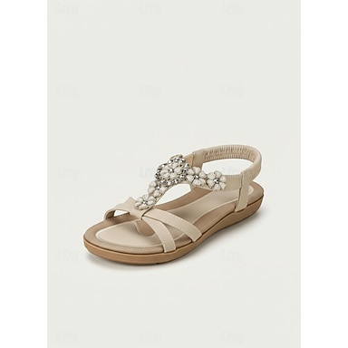 sandálias femininas de tiras com strass e flores com bordas cravejadas – sandálias rasteiras elegantes para o verão, praia e ocasiões casuais