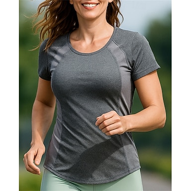 Mulheres Camisa de Trilha Top de caminhada Manga Curta Gola Redonda Blusas Ao ar livre Secagem Rápida Leve Pavio Humido Respirável Verão Primavera Poliéster Retalhos Preto Azul Marinho Cinzento Tênis