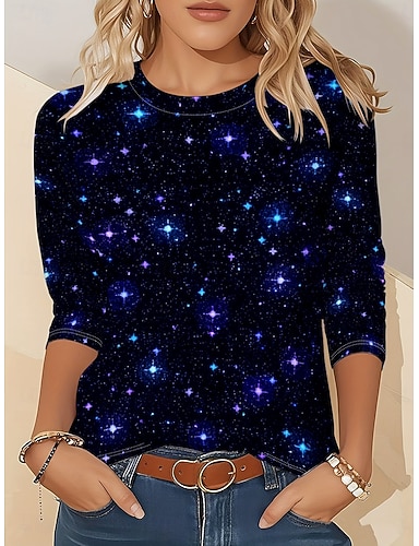 Mulheres Camiseta Imprimir Gráfico Poá Vintage Moda à moda Manga Longa Gola Redonda Decote Redondo Tops regulares Diário Final de semana Azul Real Outono Inverno