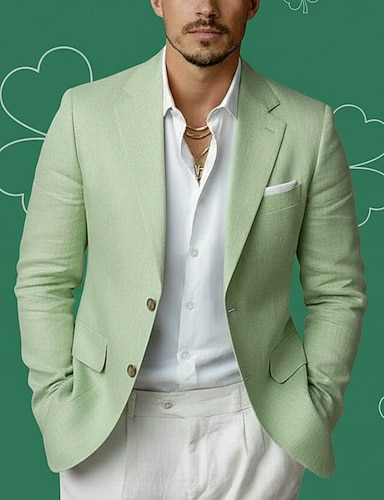 Blazer Masculino Blazer de Linho Fecho de Colarinho Moda Leve Escritório Blazer Cor Sólida Linho Azul Céu Sálvia Corte Ajustado Botão Simples Duplo