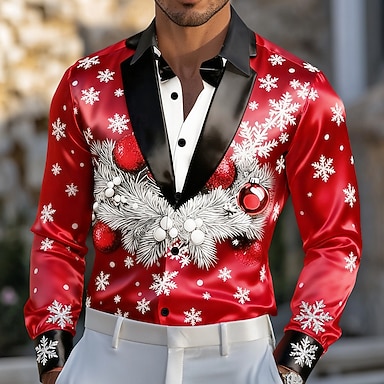 Natal Homens Fantasia de Natal Camisa de smoking estampada com gravata e terno Camisa Social Blusa de cetim Saia Manga Longa Moda Casual Ao ar livre Festa Feriado Primavera Outono Aberto para a