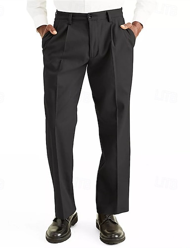 Homens Calças Social Calças Plissadas Calças de Terno Bolsos Tecido Conforto Respirável Comprimento total Formal Festa O negócio Moda Roupa de rua Preto Branco Sem Elasticidade