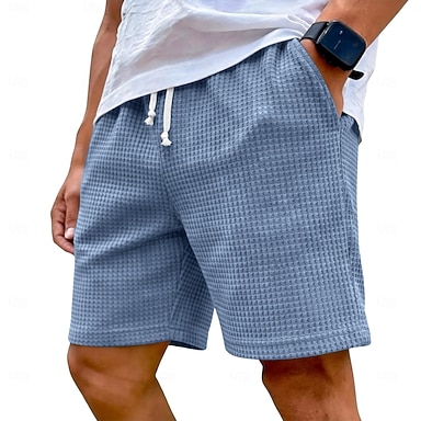 Homens Waffle Calção Shorts de verão Shorts de praia Com Cordão Cintura elástica Perna reta Tecido Textura Conforto Macio Acima do Joelho Diário Praia Moda Chique & Moderno Azul Preto Sem Elasticidade