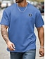 Homens Camiseta de malha waffle T-shirt Manga Curta Gola Redonda Verão Todas as Estações Bloco de cor Textura Moda Designer Casual Botões Básico Ao ar livre Casual Diário Verde Militar Cinzento