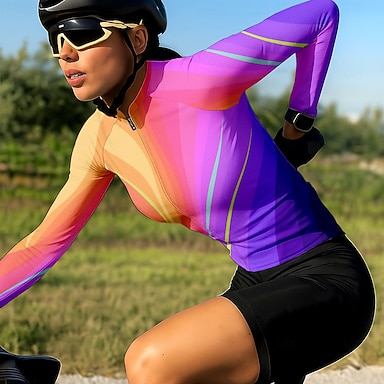 Mulheres Camisa para Ciclismo Gráfico Gradiente Manga Longa Moto Camisa / Roupas Para Esporte Blusas com 3 bolsos traseiros Filtro Solar Resistente a UV Secagem Rápida Tiras Refletoras Esportes Rosa