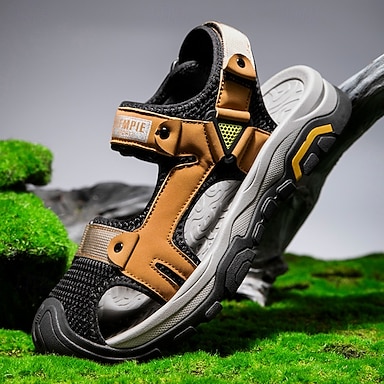 Sandálias masculinas para caminhadas ao ar livre – sandálias esportivas com tira ajustável, tela respirável e sola resistente, perfeitas para viagens de verão, aventuras na praia e atividades ao ar livre.