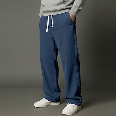 Homens Calças Calças de Veludo Calças largas Calça de moletom de perna reta Com Cordão Cintura elástica Côr Sólida Conforto Comprimento total Ao ar livre Diário Streetwear Férias Moda Preto Azul