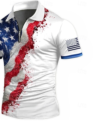 4 de julho de 2026 250º Dia da Independência Homens American US Flag Polo com zíper Manga Curta Aberto para a Lateral Casual / esportivo Desportos e Ar livre Roupa Esportiva Impressão 3D Verão Azul