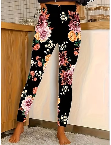 Mulheres Leggings Leggings aconchegantes Férias Casual Comprimento total Cintura Alta Floral Estampado Confortável Com Stretch Casual Diário Férias Azul Marinho Preto Amarelo fúcsia Verão Primavera