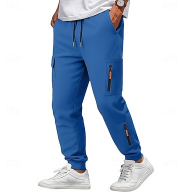 Homens Calças Esportivas Calças de lã Corredor Calças Calça de moletom cargo Com Cordão Cintura elástica Bolso multi Tecido Pavio Humido Respirável Comprimento total Ao ar livre Casual Diário Moda