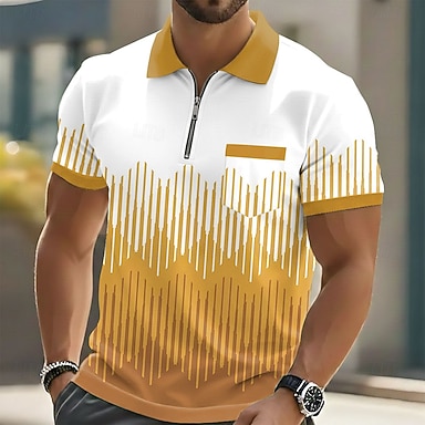 Homens Geométrico Camisas Polo Manga Curta Camisas polo Lapela Casual Ao ar livre Feriado Roupa Diária Bolsos Impressão 3D Primavera Verão Azul Roxo Marron