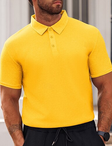 Homens Camisas Polo Waffle Camisa de golfe Trabalho Casual Lapela Manga Curta Básico Moderno Tecido Botões Verão Primavera Normal Preto Branco Amarelo Vermelho Cinzento Claro Azul Claro Camisas Polo