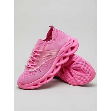 Tênis de corrida feminino rosa em tricô – tênis esportivos leves com plataforma e amortecimento, ideais para caminhadas, viagens e uso diário.