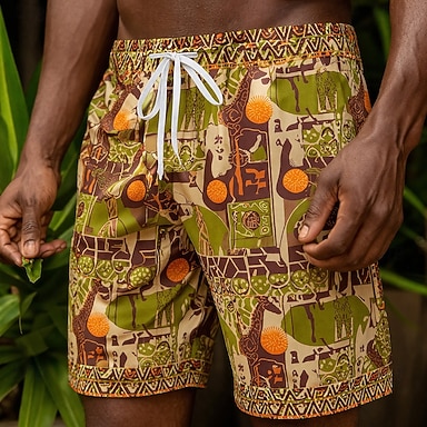 Homens Girafa Estampa Geométrica Étnico Calção Justo de Natação Fatos de banho Calções de banho Bermuda de Surf Cintura Média Havaiana Retro Vintage férias na praia Bolsos laterais Forro de malha
