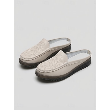 Mocassins mule bordados femininos – calçados casuais confortáveis, fáceis de calçar, ideais para caminhadas, uso diário e atividades ao ar livre em casa.