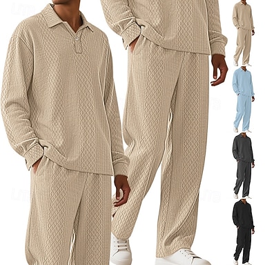 Homens Camisa de golfe Camisas Polos de Golfe Trabalho Casual Lapela Manga Longa Básico Moderno Tecido Jacquard 2 Peças Primavera Outono Normal Preto cáqui Azul Claro Cinzento Camisa de golfe