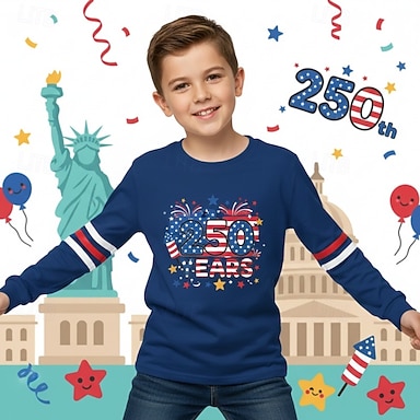 Para Meninos 3D Gráfico 250º Aniversário Camisa Camiseta Manga Longa Impressão 3D Primavera Outono Esportes Moda Roupa de rua Infantil 4-12 anos Gola Redonda Casual Diário Ao ar livre Normal