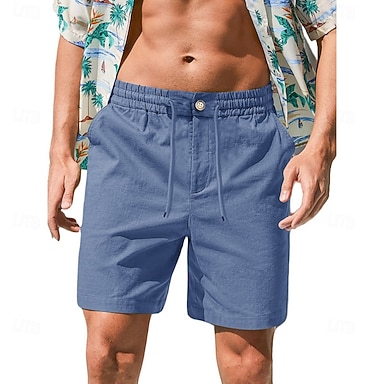 Homens Calção Shorts de linho Shorts de verão Shorts de praia Com Cordão Cintura elástica Tecido Conforto Respirável Curto Diário Ao ar livre Praia Férias Moda Azul Preto Sem Elasticidade