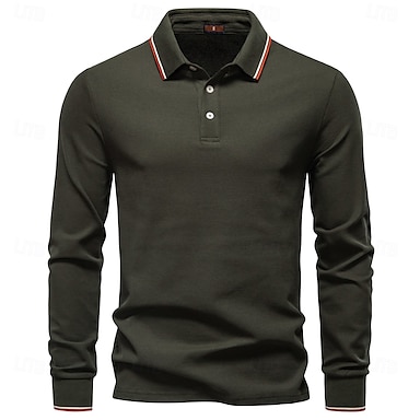 Homens Pólo Trabalho O negócio Aberto para a Lateral Manga Longa Lazer Confortável Tecido Bloco de cor Puro Todas as Estações Normal Rubi Vermelho Preto Branco Azul Marinho Escuro Cinzento Claro