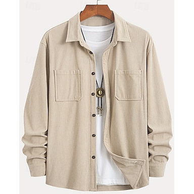 Homens Camiseta de Veludo Jaqueta Camisa Jaqueta de Inverno Tecido Férias Roupa Diária Verde Tropa Bege Manga Longa Lapela Primavera Outono Roupa Bolsos