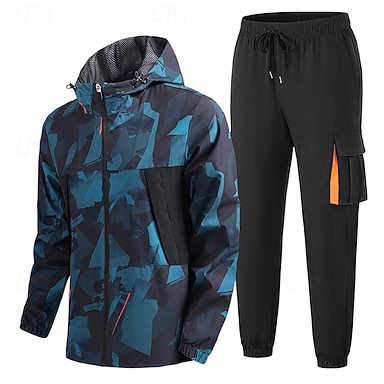 Homens Agasalho de 2 peças Moletom Lounge Hoodie Conjuntos de moletom Zip Up Estampado Conjuntos Primavera Outono Preto Azul Academia Exercite-se Corrida Cintura Alta Proteção Solar Leve Manga Longa