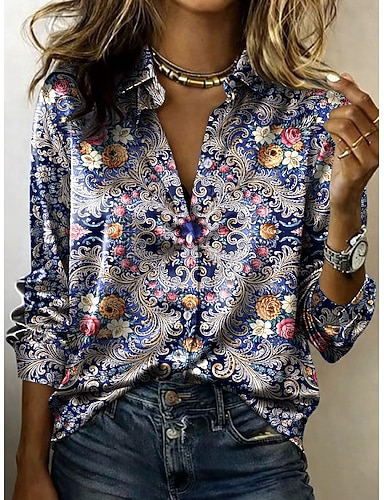 Mulheres Camisa Social Botões Imprimir Floral Gráfico Elegante à moda Básico Manga Longa Colarinho de Camisa Tops regulares Diário Trabalho Azul Vermelho Roxo Bege Primavera Outono Inverno