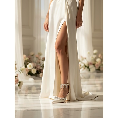 Sapatos de salto alto brancos femininos com tira no calcanhar e fivela – elegantes sapatos de bico fino e salto agulha para convidadas de casamento, ocasiões formais e eventos especiais.
