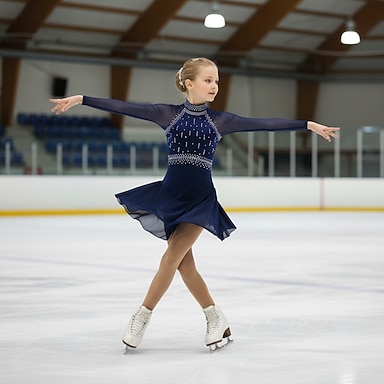 Vestidos para Patinação Artística Mulheres Patinação no Gelo Vestidos Azul Escuro Patchwork Barra Assimétrica Com Stretch Treino Competição Roupa para Patinação Clássico Cristal / Strass Manga Longa