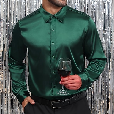 Homens Camisa Social Blusa de cetim Saia Camisa casual camisa de botão Camisa de formatura Tecido Formal Casamento Preto Branco Vinho Azul Royal Manga Longa Lapela Primavera & Outono Todas as Estações