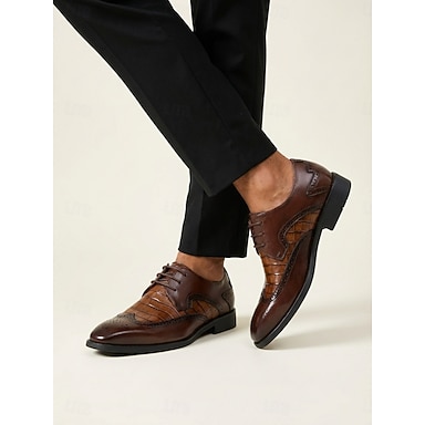 Sapatos sociais masculinos em couro sintético marrom com estampa de crocodilo – calçados de luxo para negócios, ocasiões formais e casamentos para homens elegantes.
