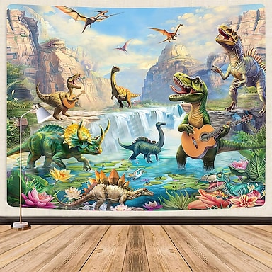 tapeçaria de parede com tema de mundo dos dinossauros, jurássico, T-Rex, Triceratops, vulcão e selva tropical para decoração de quarto infantil, sala de jogos para meninos, cenário para festa de