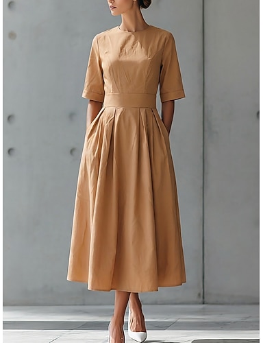Mulheres Vestido midi Vestido de festa Vestido casual Vestido de trabalho Vestido A Line Elegante Moda Moderno Ao ar livre Férias Festa Normal Tecido Manga 3/4 Decote V Marron Verão Primavera