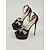 Sandálias femininas pretas de verniz com plataforma e salto alto, modelo scarpin com tira no tornozelo, perfeitas para festas noturnas e baladas. &looks ousados para a noite