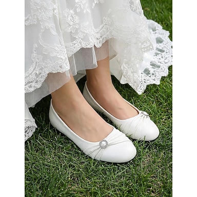 Sapatilhas femininas confortáveis na cor marfim com detalhes em strass, elegantes sapatilhas de noiva para noivas mais maduras em casamentos ao ar livre em jardins.
