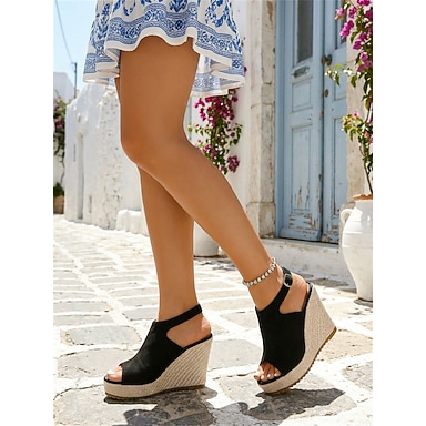 Sandálias plataforma femininas com estampa floral – elegantes sandálias de plataforma com fivela e bico aberto, com sola de juta estilo espadrille, calçado confortável para o verão, ideal para
