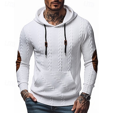 Homens Jacquard Moletom Moletom com capuz Branco Com Capuz Tecido Patchwork Bloco de cor Textura Casual Diário Desportos e Ar livre Roupa de rua Legal Roupa de Esporte Primavera & Outono Roupa