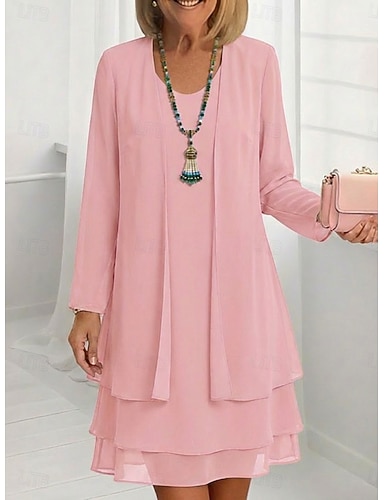 Duas Peças Terno de vestido Longuette Vestido de convidada de casamento Vestido Para Mãe dos Noivos Sem Manga Gola Redonda Elegante Costurado coquetel Formal De Lã Saias de jaqueta curta com Flor
