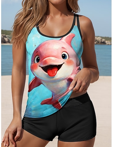 Mulheres Roupa de Banho Tankini 2 partes Cintura Alta roupa de banho Frente Única Férias Roupa de Praia Gráfico Animal Decote U Sem Manga Fatos de banho