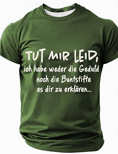 Camiseta Gráfica Engraçada Masculina de Manga Curta - Camiseta de Citação Humorística Alemã 'Quando Deus Me Criou Ele Disse Que Seria Engraçado!'