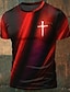 Camiseta masculina moderna com estampa gráfica em degradê vermelho e preto, gola redonda, manga curta, estilo cristão, presente para ele, roupa de grife.