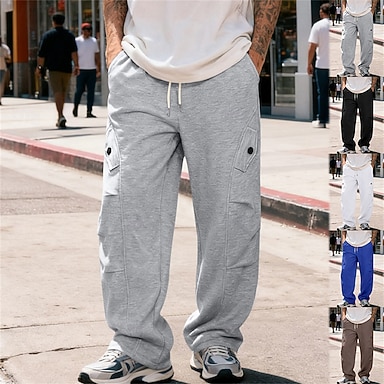 Homens Calças Esportivas Corredor Calças Calça de moletom de perna reta Calças Plissadas Cintura elástica Com Cordão Tecido Conforto Macio Comprimento total Ao ar livre Diário Para Noite Férias Moda