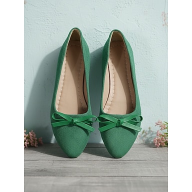 Sapatilhas femininas verdes com laço – sapatilhas leves e confortáveis para mulheres, estilo clássico e feminino para o escritório, uso diário, viagens, compras e ocasiões casuais.