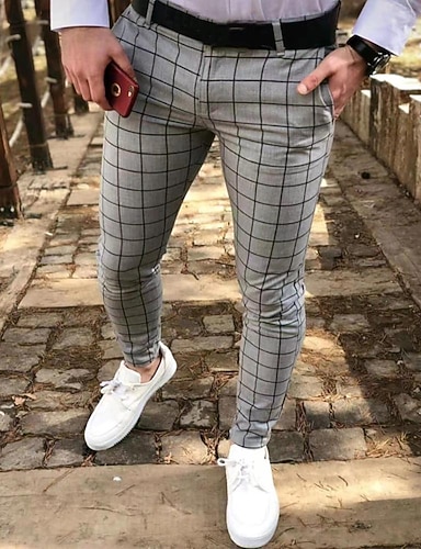 Homens Calças Social chinês Bolsos Botões Xadrez Vestível Diário Ao ar livre O negócio Moda Roupa de rua Vermelho