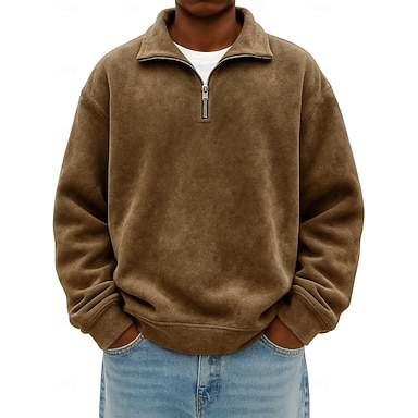 Homens Moletom Moletom com zíper Preto Azul Marinha Cáqui Cinzento Meio Zíper Tecido Desportos e Ar livre Diário Feriado Roupa de rua Legal Retro Inverno Primavera & Outono Roupa Moletons Moletons