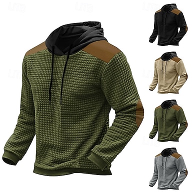 Homens Moletom Moletons Waffle Adamascado Preto Verde Tropa Cinzento Com Capuz Tecido Patchwork Bloco de cor Desportos e Ar livre Casual Diário Roupa de rua Legal Roupa de Esporte Outono Inverno Roupa
