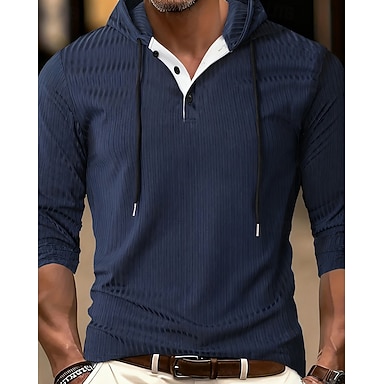 Homens Camiseta Moletom Henley Manga Longa Com Capuz Henley Primavera & Outono Côr Sólida Roupa de Malha Diário Ao ar livre Bolsos Ao ar livre Casual Roupa Esportiva Cinzento Escuro Azul marinho Preto