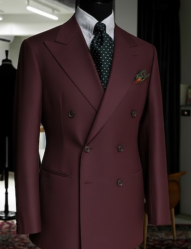 Homens Jaqueta Blazer Colar de fechamento Vintage Clássico Cor Sólida Blazer Preto Vinho Moderno Seis botões de peito duplo