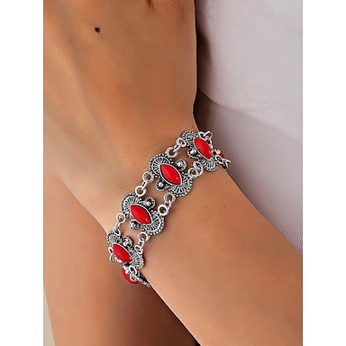 Pulseira vintage boho feminina com pedra turquesa – design de corrente banhada a prata antiga para uso casual em festas e presentes